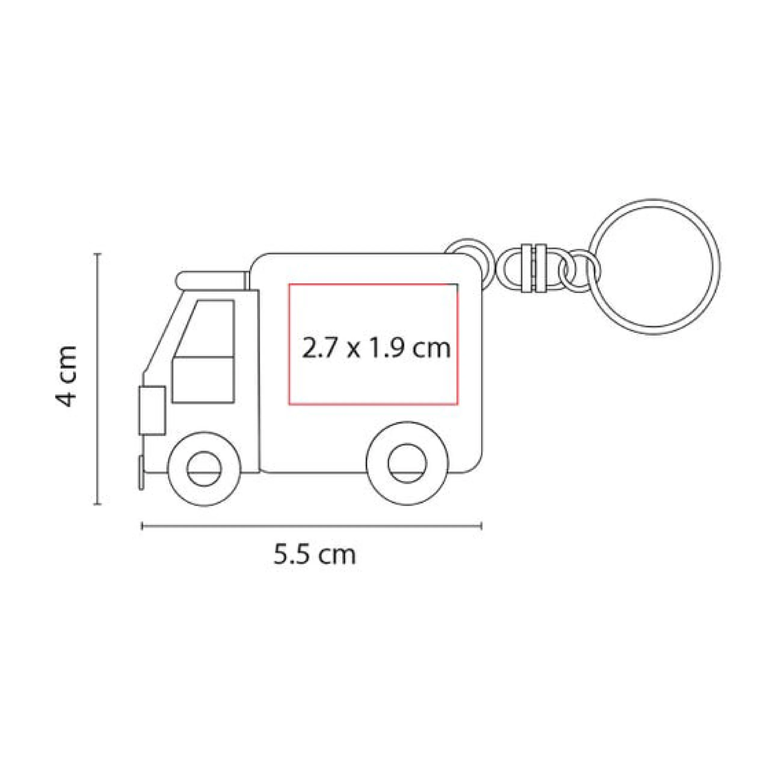 Llavero con flexómetro retráctil de 1 metro y diseño de camión. Fabricado en plástico resistente con cinta metálica para mediciones rápidas.