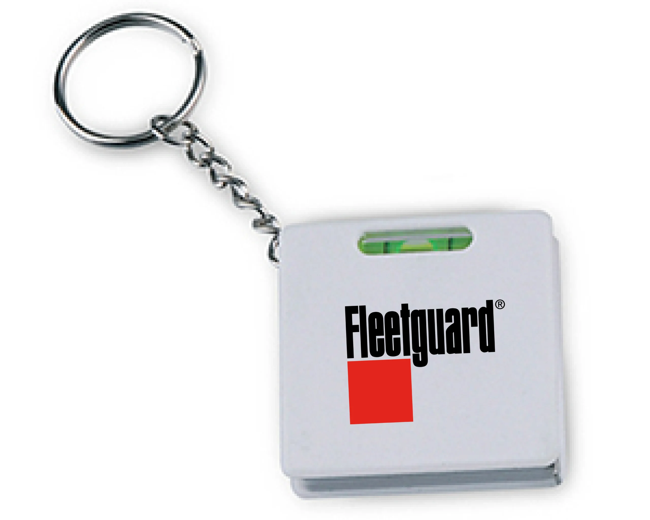 Llavero de plástico con nivelador y flexómetro de 1 m.
