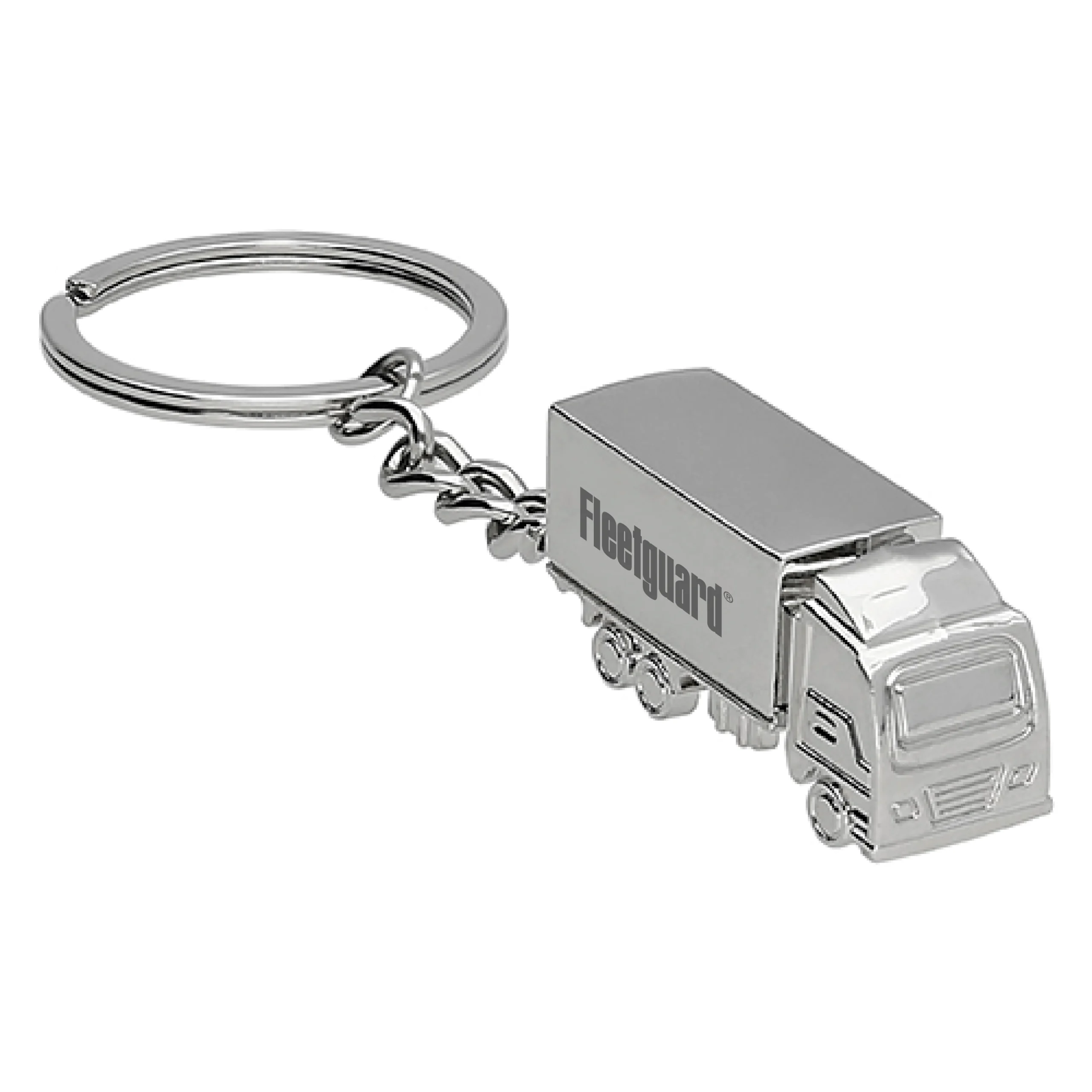 Llavero metálico en forma de tráiler 3D y aro reforzado.
